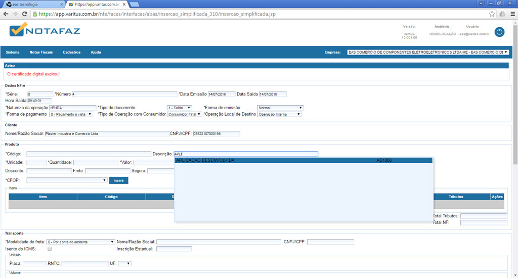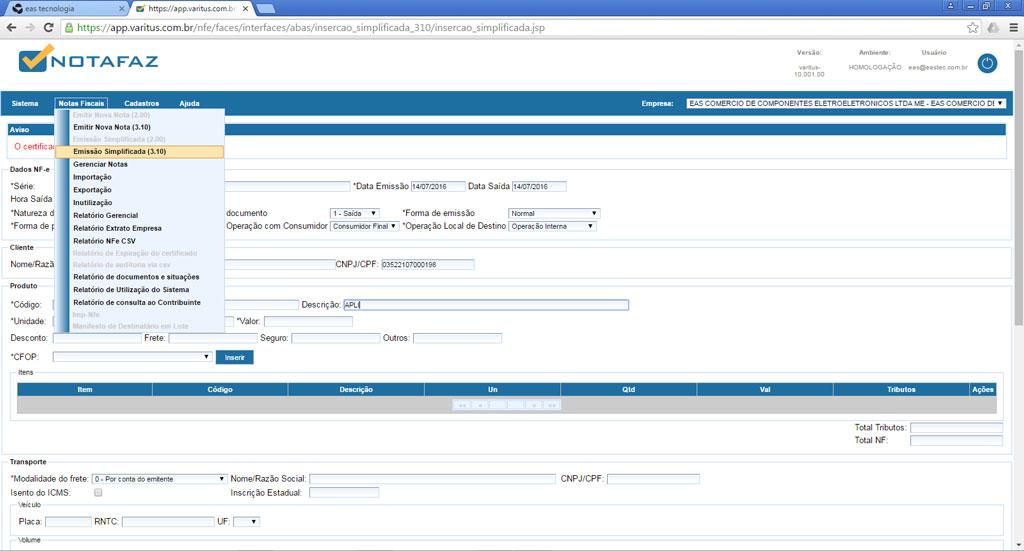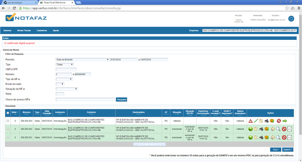 Monitoramento por e-mail em tempo real, receba notificações da situação do certificado digital, possíveis divergências e notas técnicas. Podendo também capturar todas as sua notas recebidas por e-mail. |